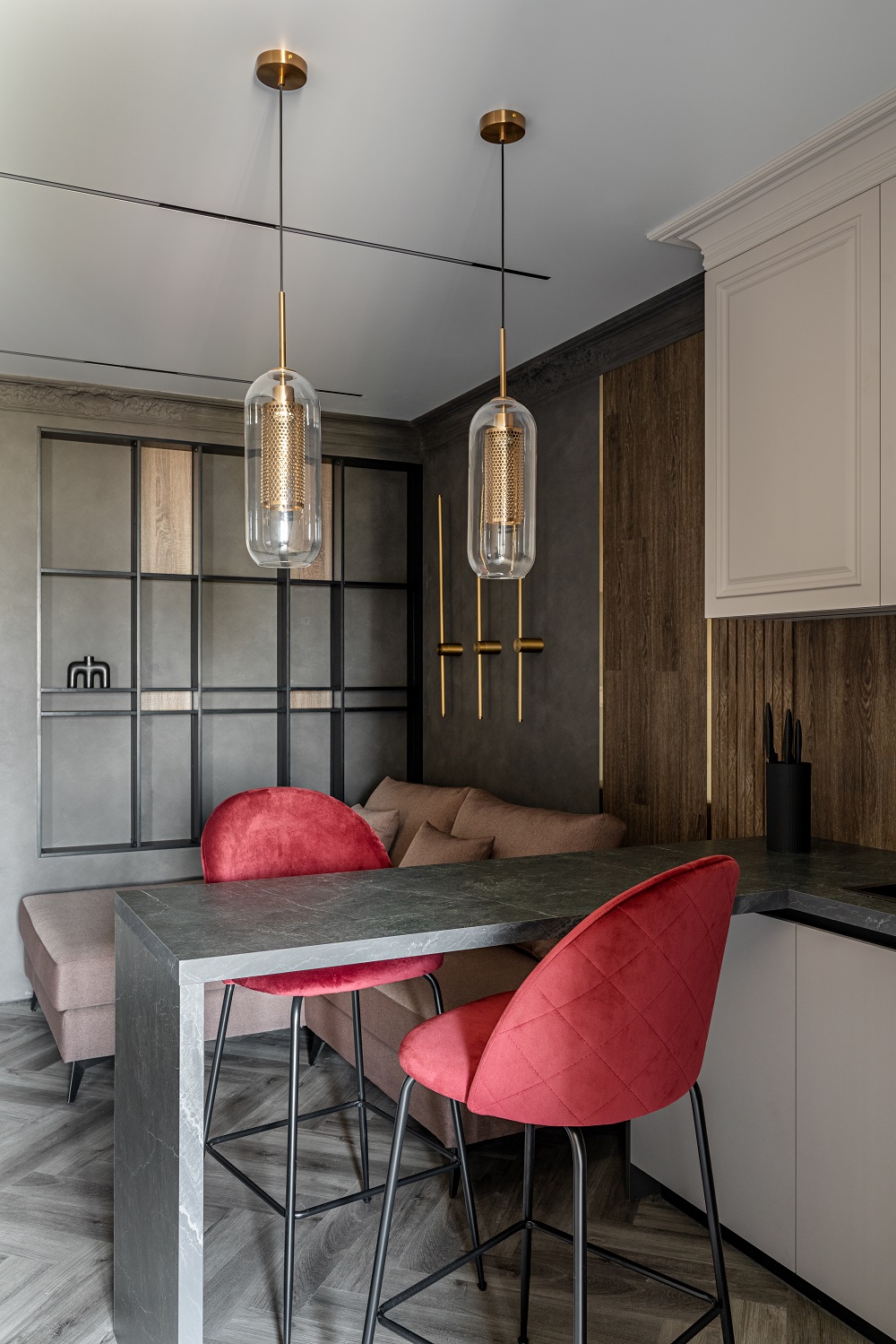 Чувство меры и баланса при использовании красного и золота важны как никогда. Серая основа успокаивает и заземляет интерьер, так и рождается баланс.